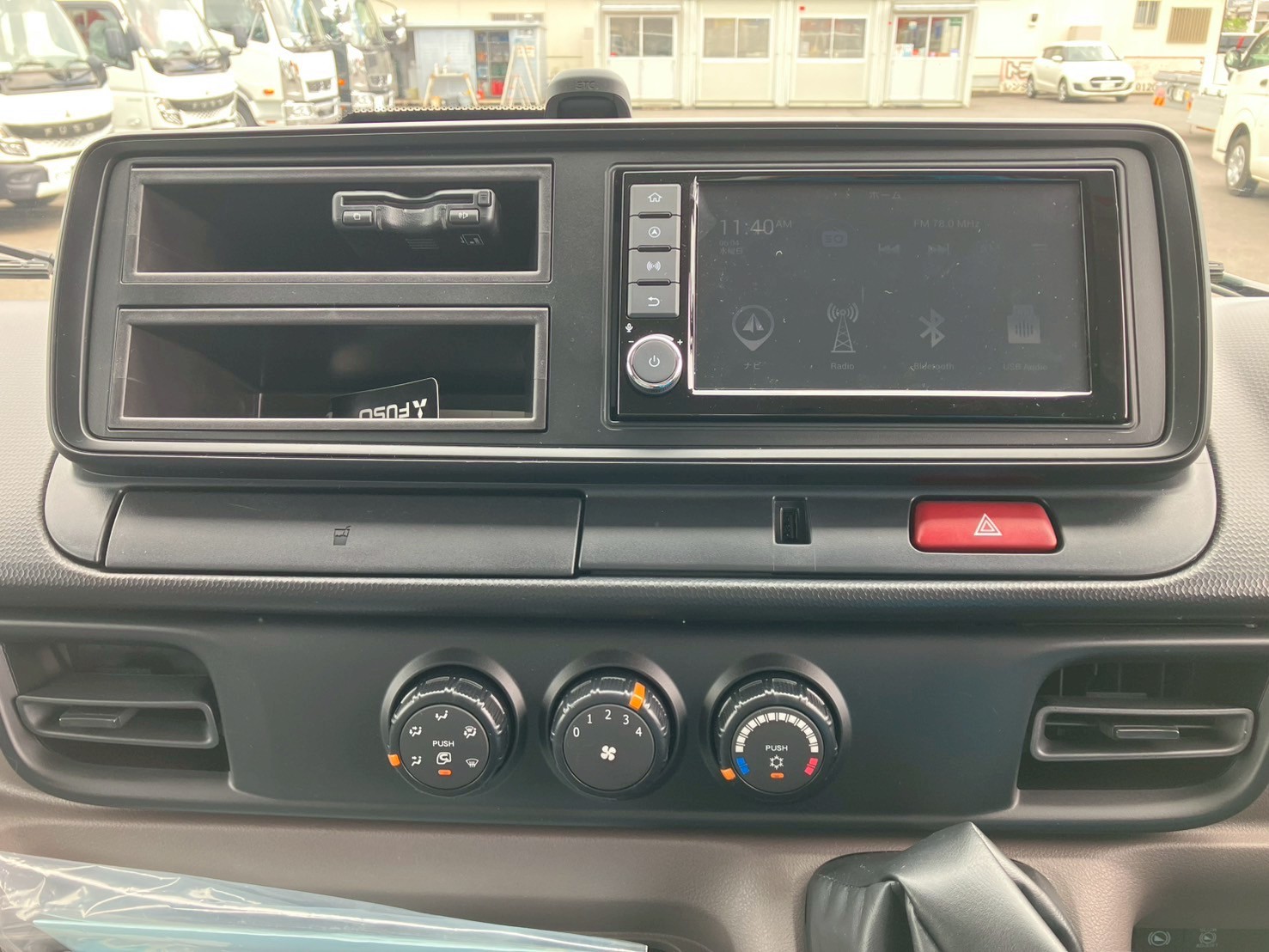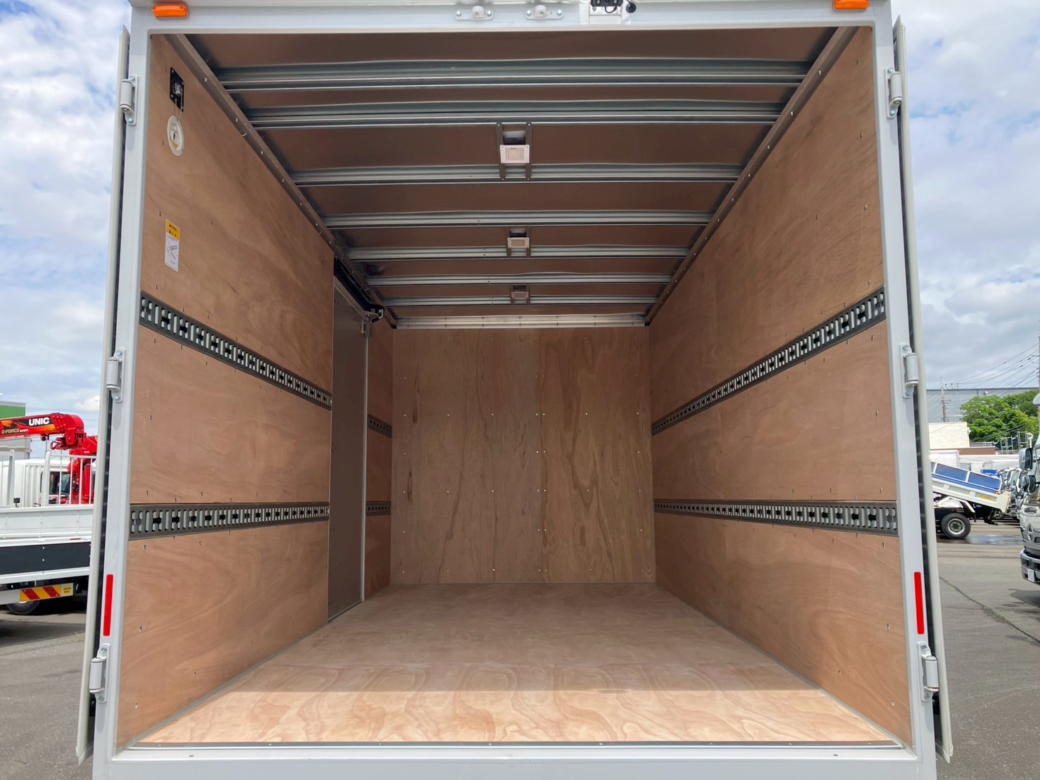 未使用車、ワイド幅/ロング、格納パワーゲート、純正ナビ、ラジコン、助手席側サイドドア、ラッシングレール2段、輪留め入れ