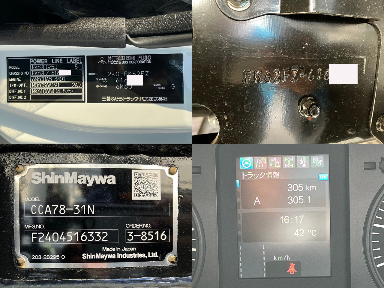 | ※装備・架装・備品などは現車状態での販売です。実際に車両の確認をお勧めしております。 ※キズや凹みなど、画像からは確認出来ない箇所もございますので詳細はお問合せください。 ※新たに車検を受けた際、車両によっては旧車検証記載の内容と異なる場合がございますのでご注意ください。(減トン等) ※レンタカー登録の車両に関して、記載の走行距離(ODOメーター)を超過している場合がございます。 |