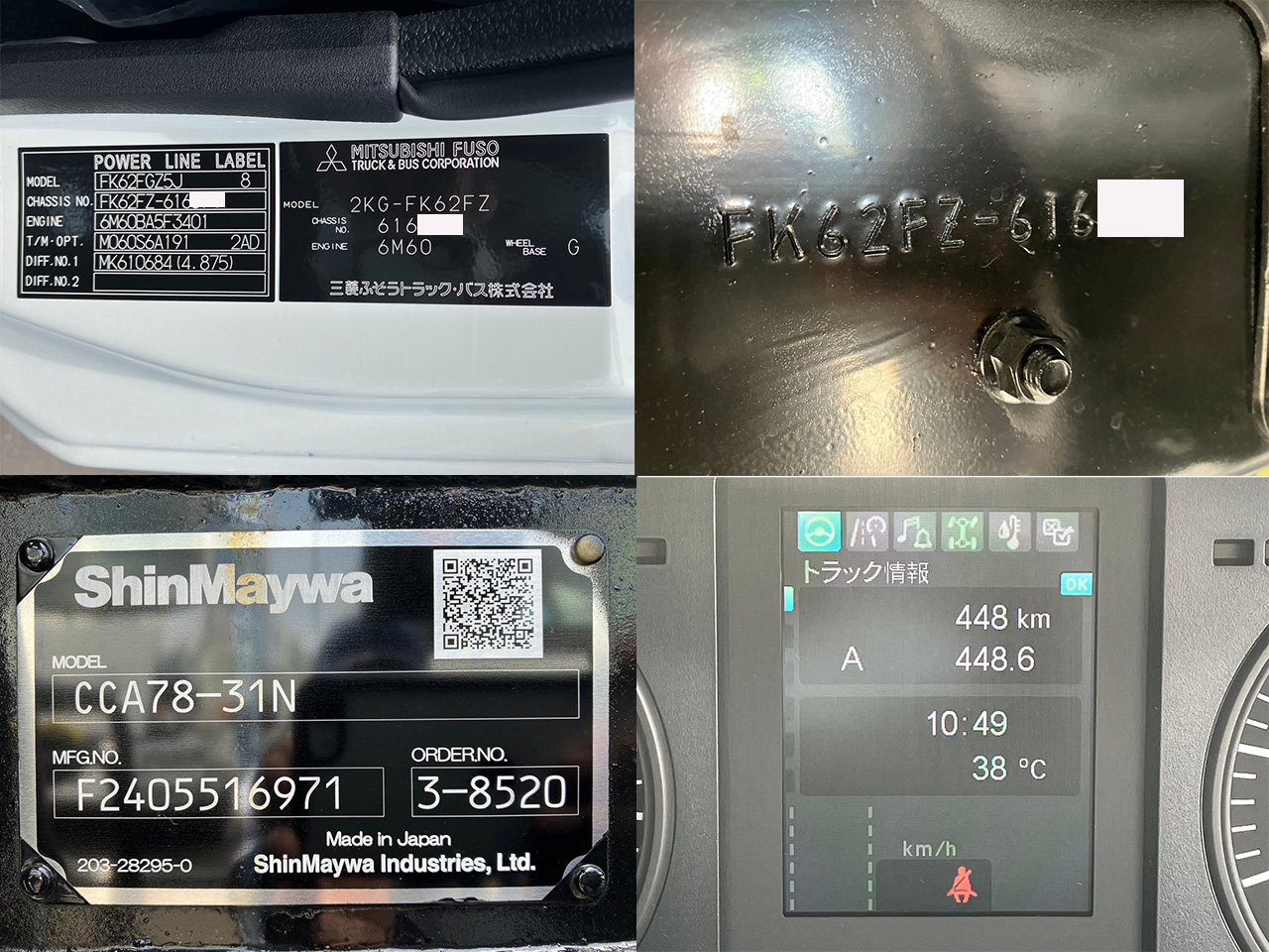 | ※装備・架装・備品などは現車状態での販売です。実際に車両の確認をお勧めしております。 ※キズや凹みなど、画像からは確認出来ない箇所もございますので詳細はお問合せください。 ※新たに車検を受けた際、車両によっては旧車検証記載の内容と異なる場合がございますのでご注意ください。(減トン等) ※レンタカー登録の車両に関して、記載の走行距離(ODOメーター)を超過している場合がございます。 |