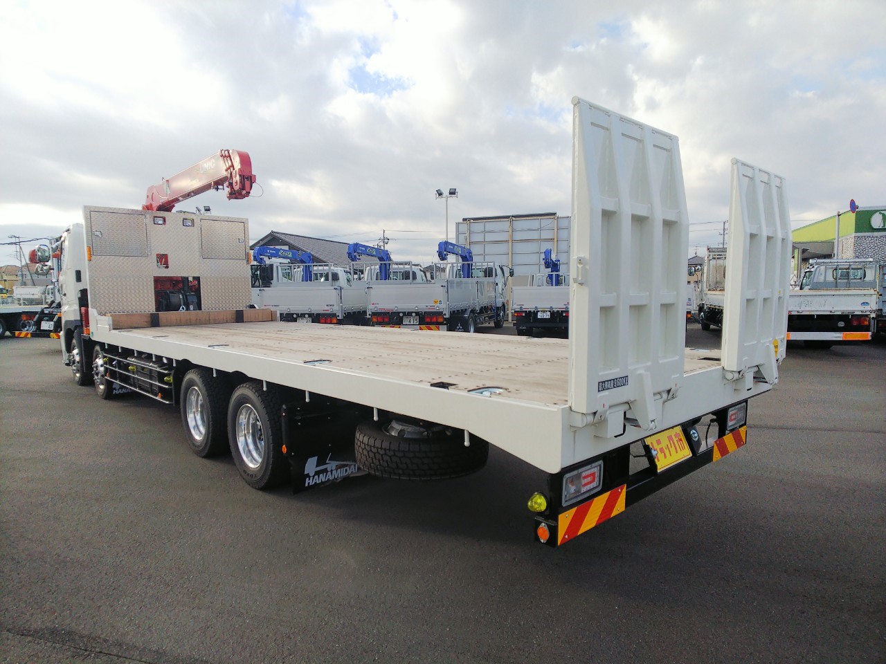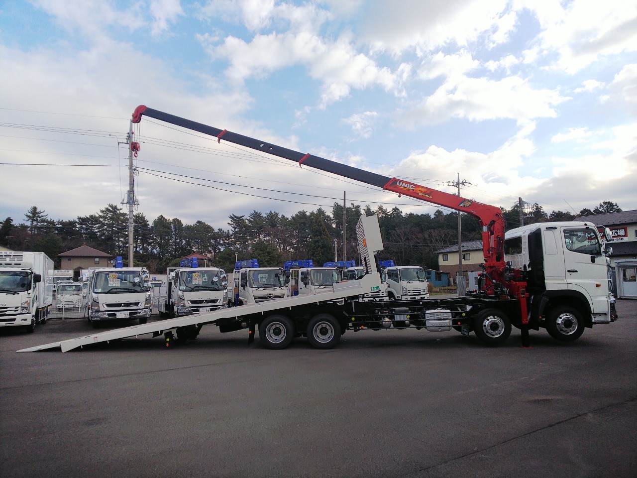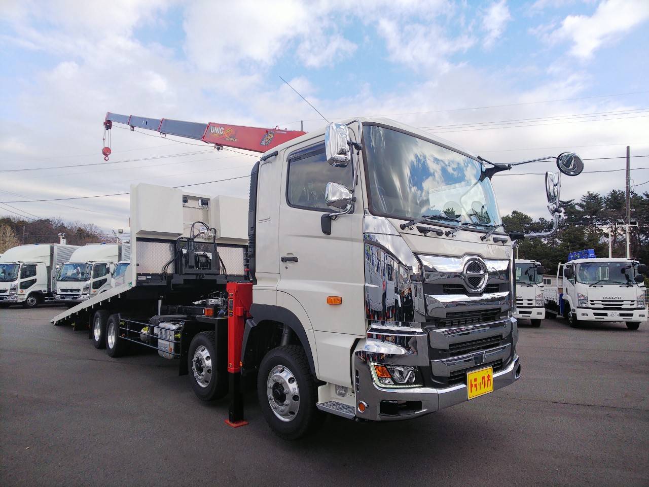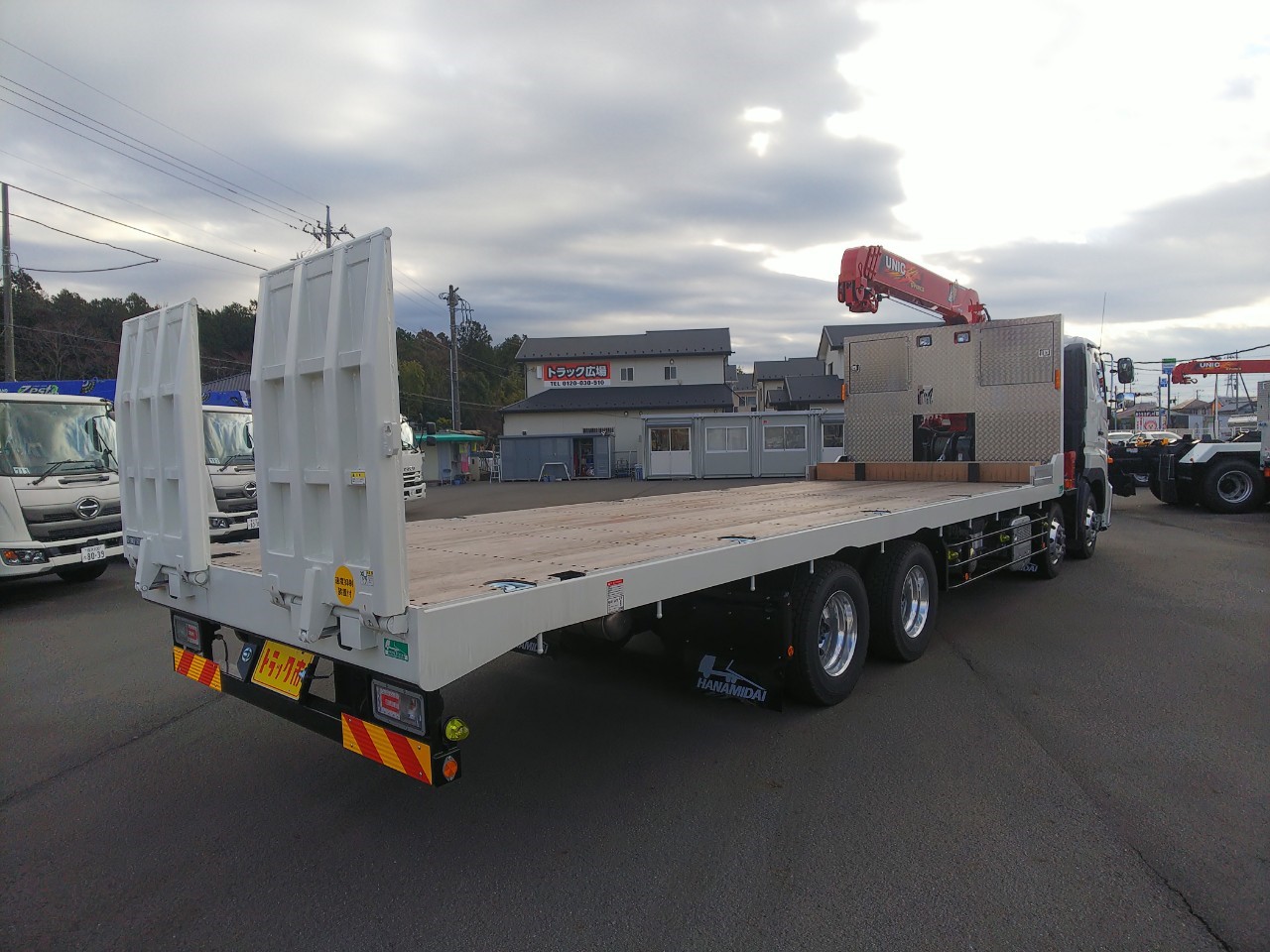 | 4軸低床、4段古河ユニック、2デフ、ウィンチ、ラジコン、自動あゆみ、ETC、上物/花見台 | ||