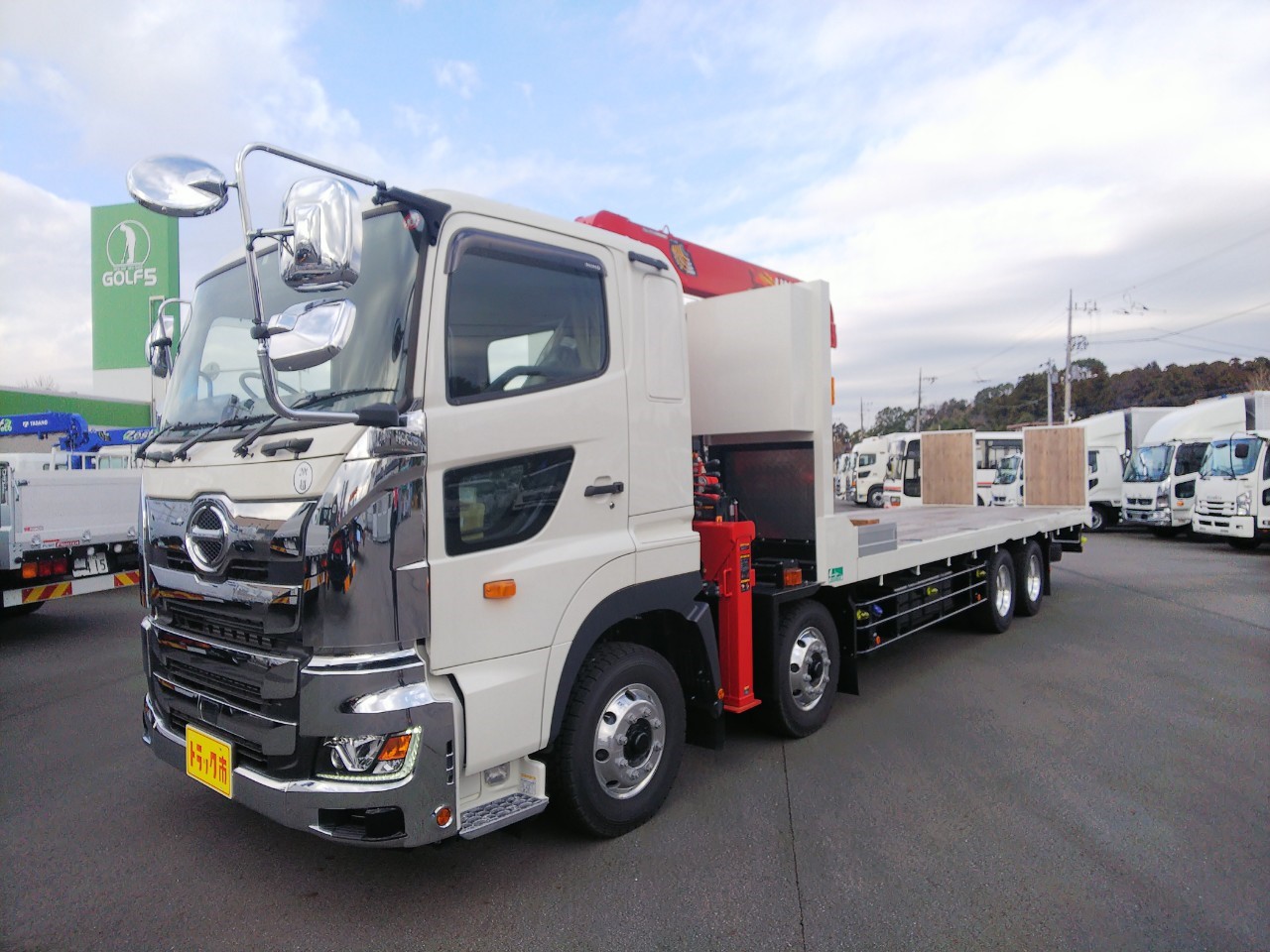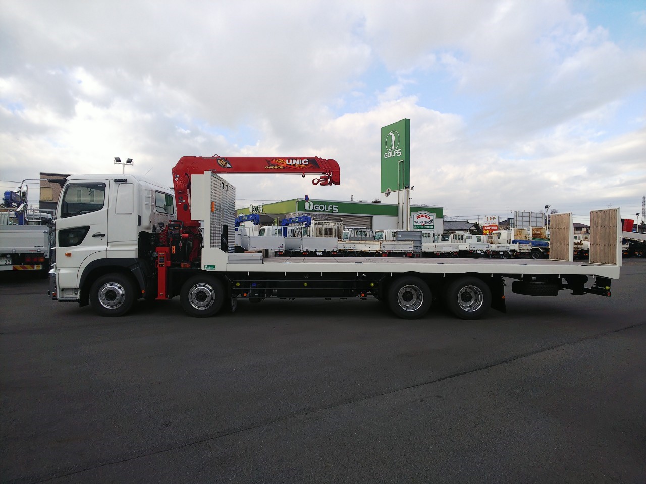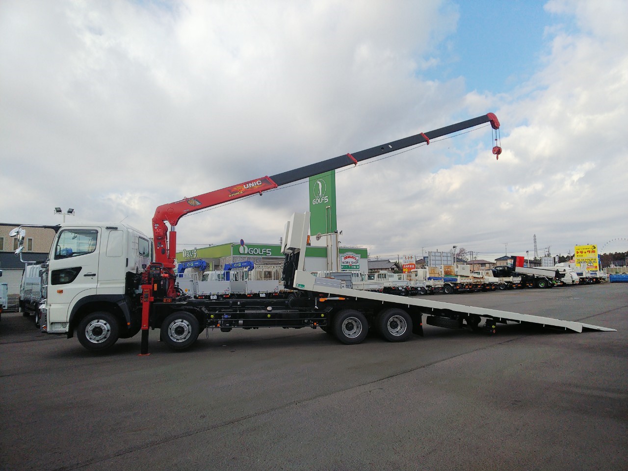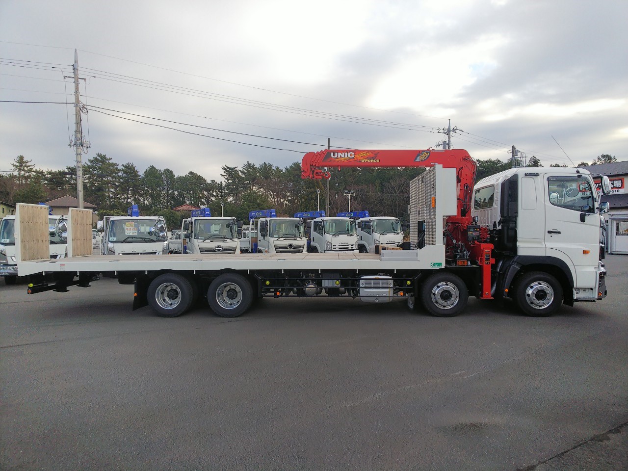 | 4軸低床、4段古河ユニック、2デフ、ウィンチ、ラジコン、自動あゆみ、ETC、上物/花見台 | ||
