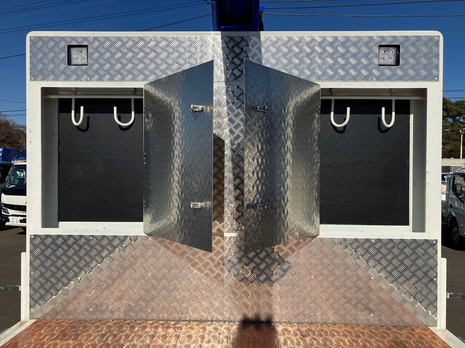 | 未使用車、増増トン、ベッド、4段/タダノ、ラジコン、アウトリガ/角足、アミブロック、床/木、フック16対、収納多数/Jフック、LEDテールランプ | ||