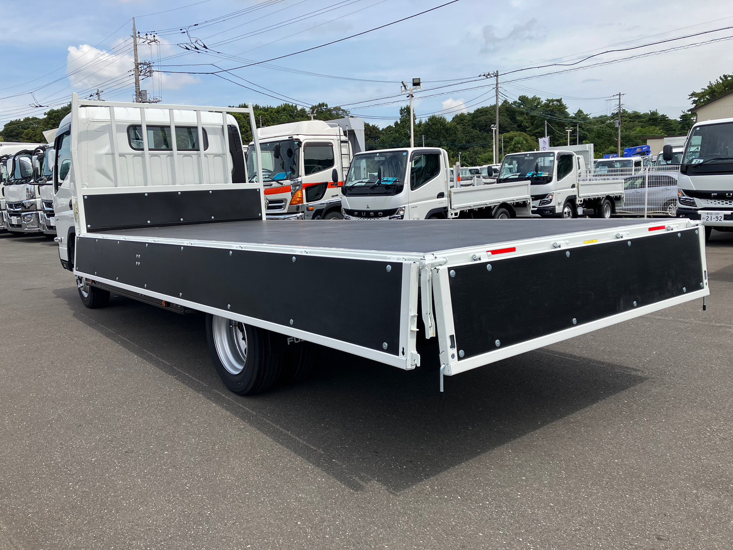 | 〇未使用車 〇ワイド/超ロング 〇最大積載量/3,000kg 〇上物/パブコ 〇アオリ下フック/12対 〇衝突被害軽減ブレーキ 〇アオリ開閉補助装置 |