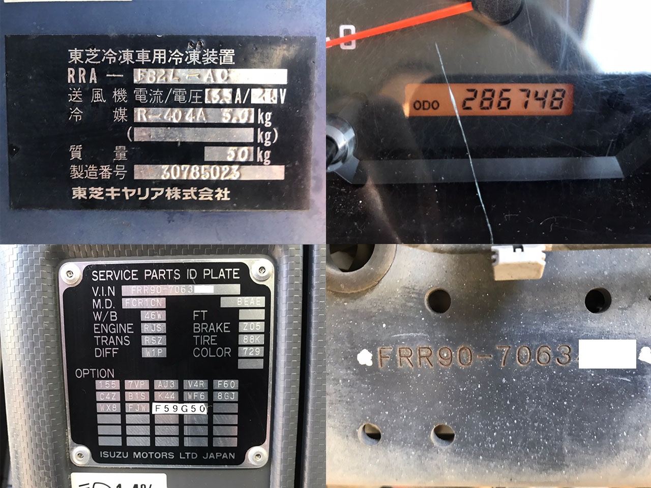 | 〇4t標準/ロング 〇低温設定 〇東芝/F82L-AC 〇+15℃→-13℃確認済(1時間) 〇アルミホイール 〇実走行28万キロ台 〇助手席側スライドドア 〇ラッシング2段 〇門高1,290mm |