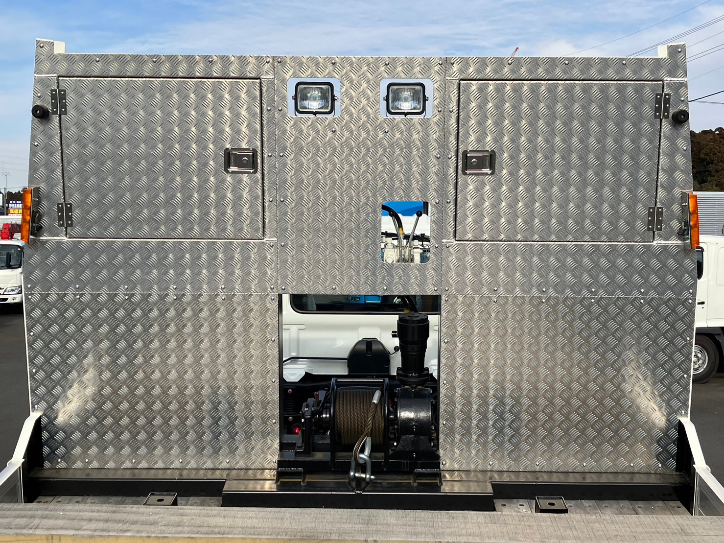 | 未使用車、増トンセーフティローダー、ウィンチ、自動あゆみ、ベッド付き、Jフック付き収納、丸環フック5対、オートクルーズ、燃料タンク/200L | ||