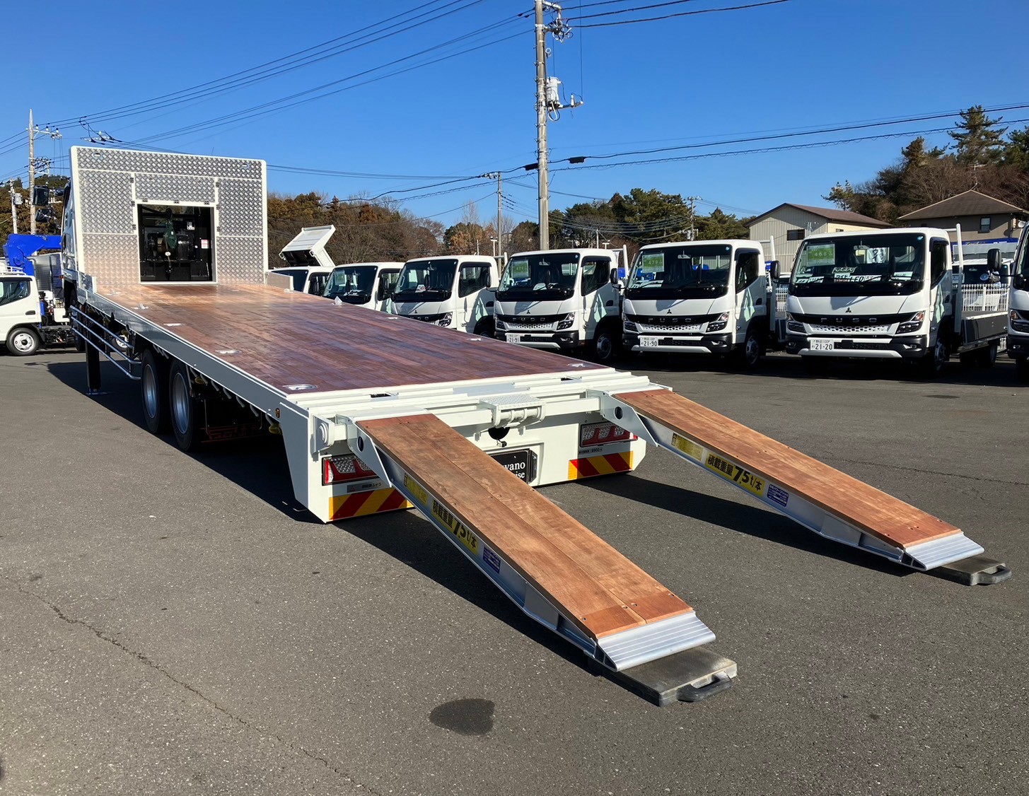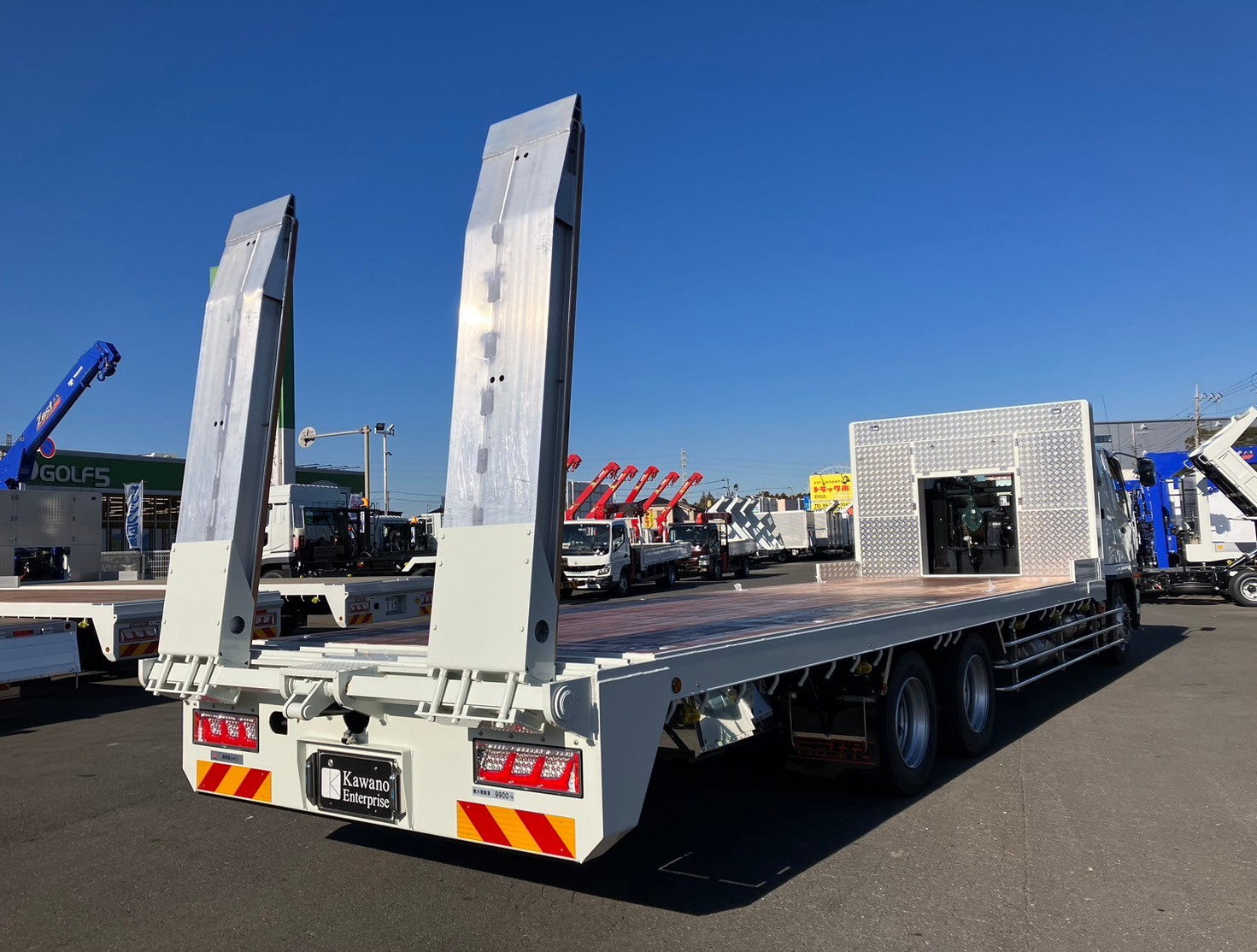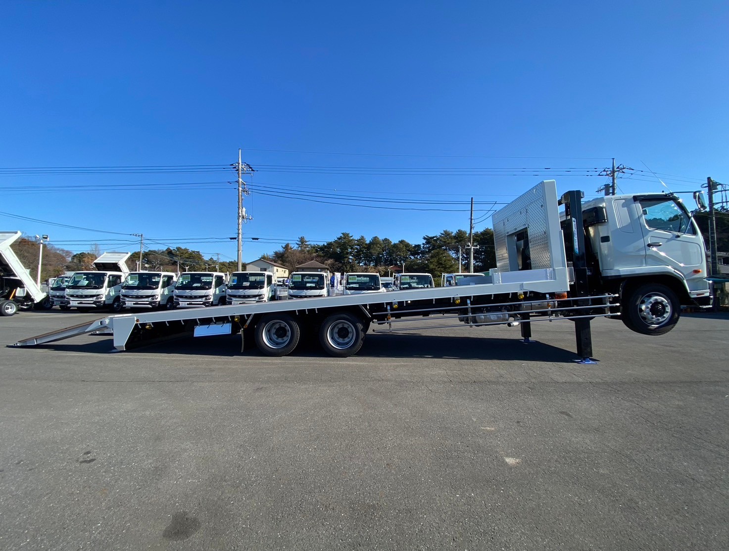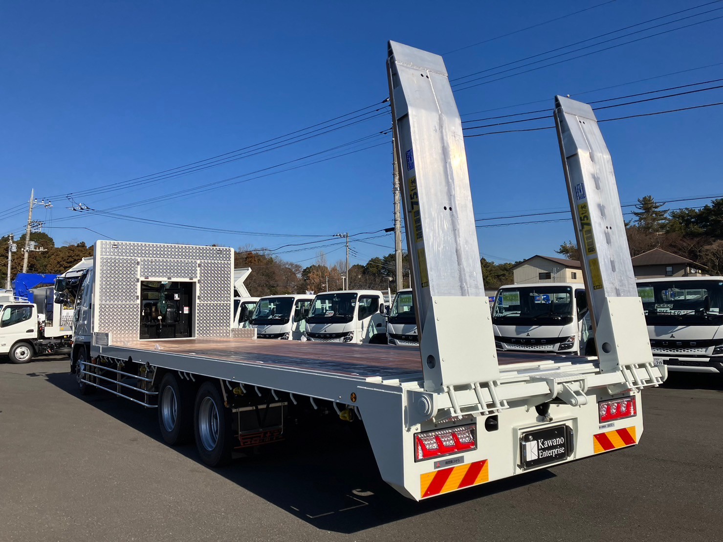 | 未使用車、増増トン、セルフローダー、ワイド幅、ベッド付き、自動アユミ、ラジコン、ウィンチ、メッキパーツ、床/丸環フック5対、鳥居収納/Jフック付き、荷台下フック/助18・運20、荷台後方フック2、LEDテールランプ | ||