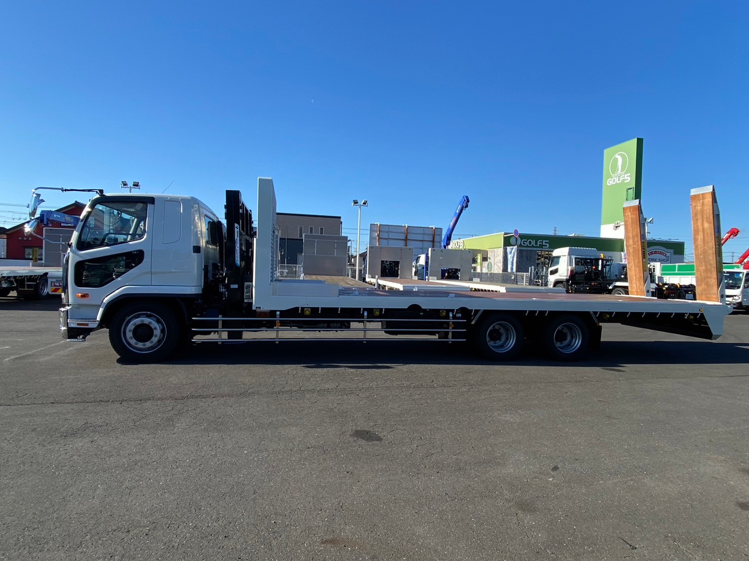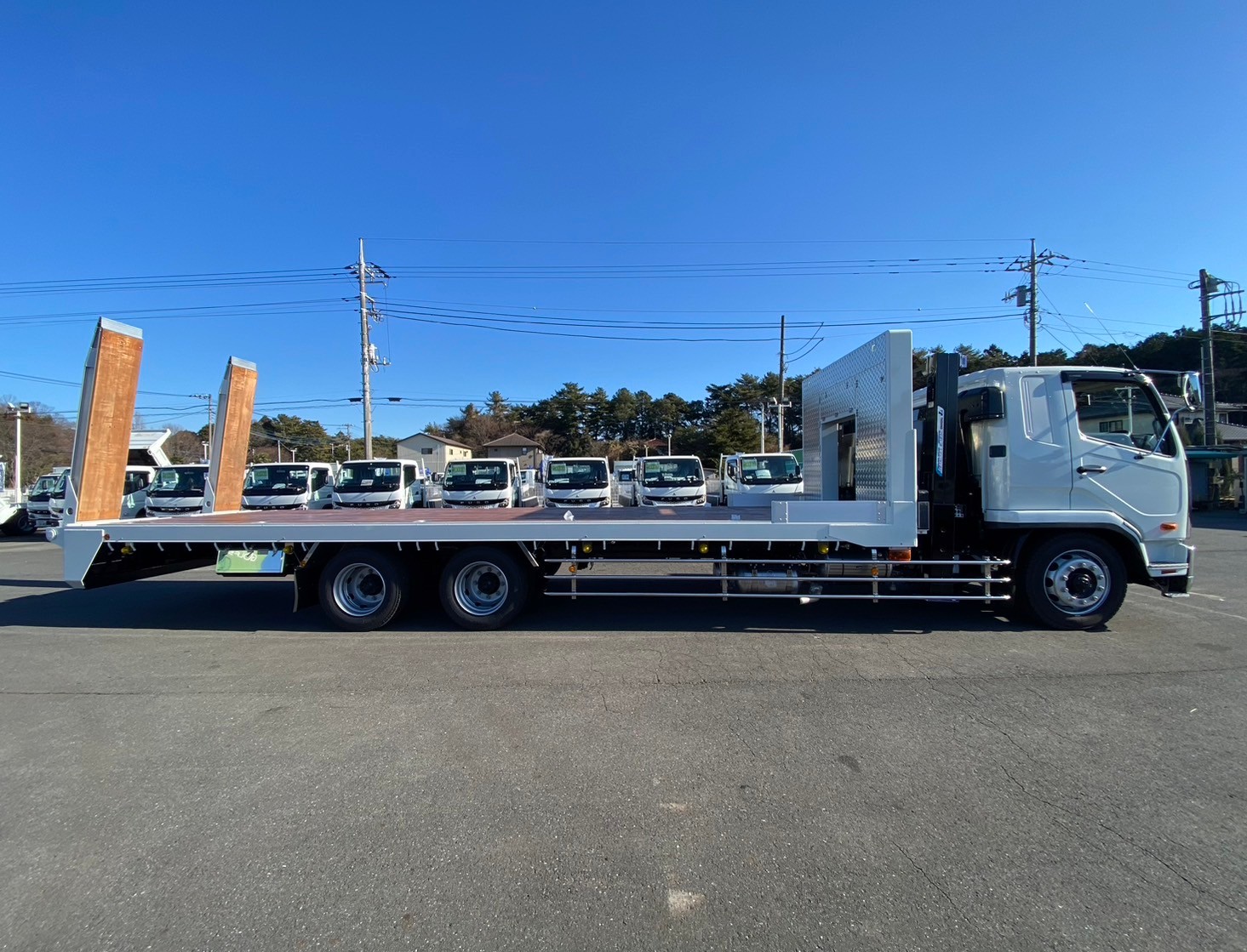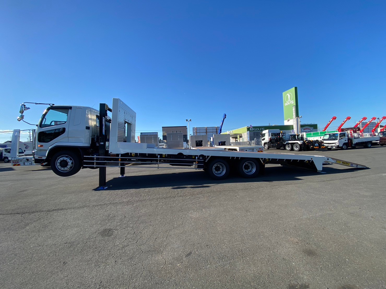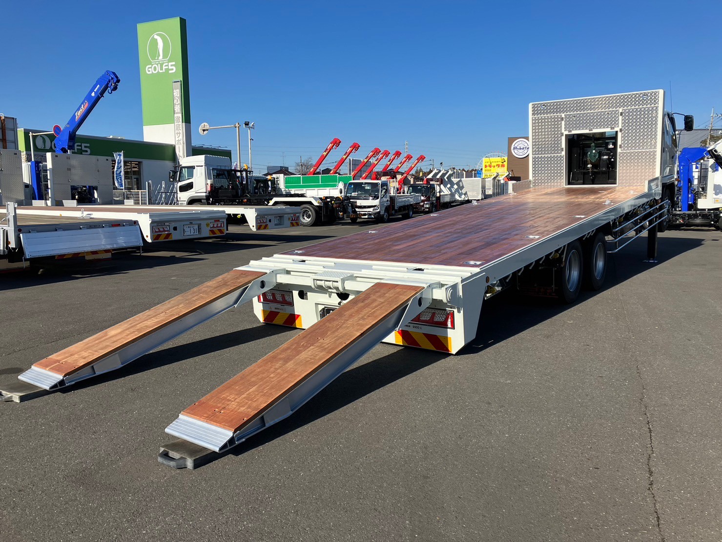 | 未使用車、増増トン、セルフローダー、ワイド幅、ベッド付き、自動アユミ、ラジコン、ウィンチ、メッキパーツ、床/丸環フック5対、鳥居収納/Jフック付き、荷台下フック/助18・運20、荷台後方フック2、LEDテールランプ | ||