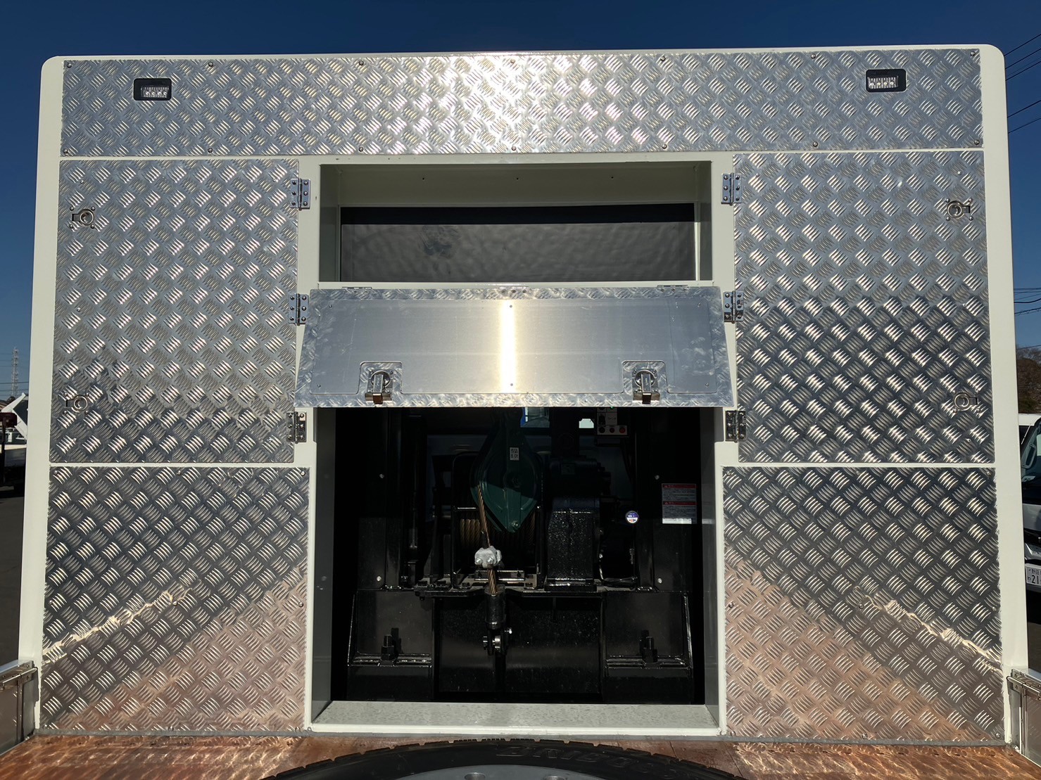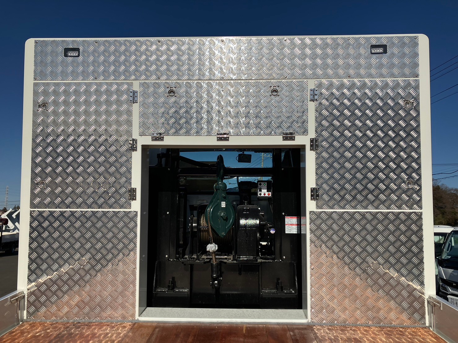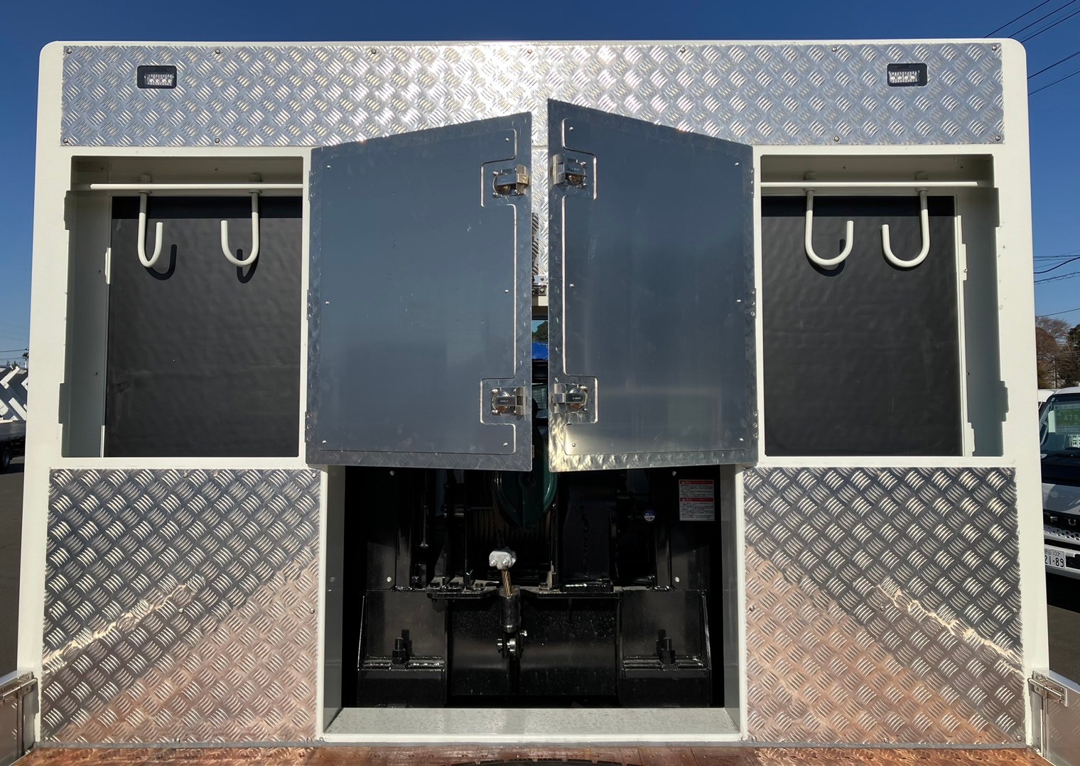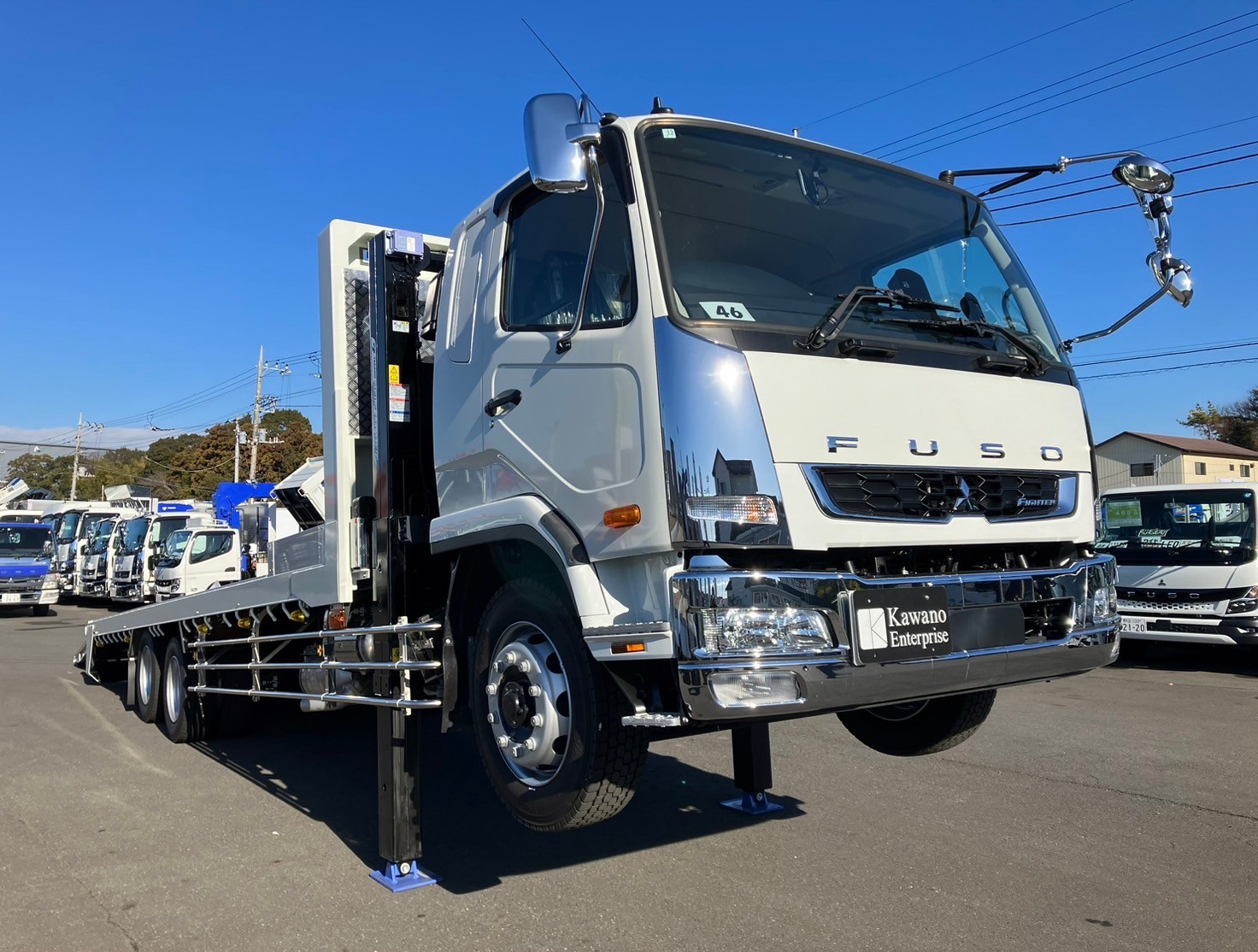 | 未使用車、増増トン、セルフローダー、ワイド幅、ベッド付き、自動アユミ、ラジコン、ウィンチ、メッキパーツ、床/丸環フック5対、鳥居収納/Jフック付き、荷台下フック/助18・運20、荷台後方フック2、LEDテールランプ | ||