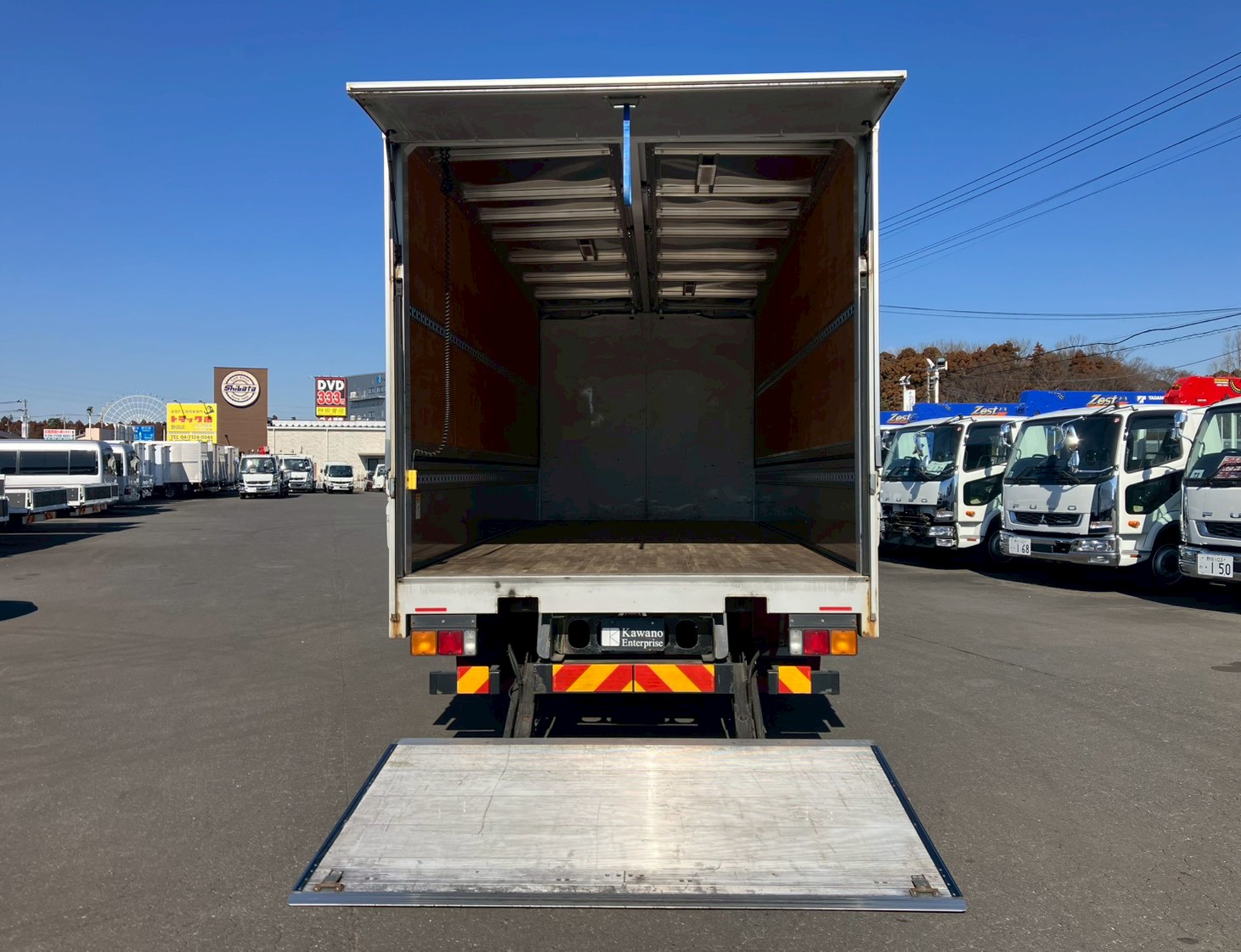 ワイド幅/6.2mボディ、ベッド付き、跳ね上げパワーゲート、エアサス、風防、ラッシングレール2段、床フック6対、バックモニター、ETC2.0