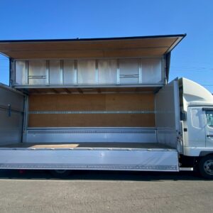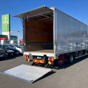 ワイド幅/6.2mボディ、ベッド付き、跳ね上げパワーゲート、エアサス、風防、ラッシングレール2段、床フック6対、バックモニター、ETC2.0