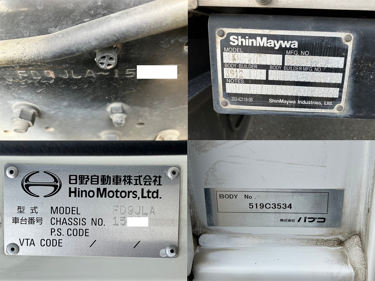 | ※装備・架装・備品などは現車状態での販売です。実際に車両の確認をお勧めしております。 ※キズや凹みなど、画像からは確認出来ない箇所もございますので詳細はお問合せください。 ※新たに車検を受けた際、車両によっては旧車検証記載の内容と異なる場合がございますのでご注意ください。(減トン等) ※レンタカー登録の車両に関して、記載の走行距離(ODOメーター)を超過している場合がございます。 |